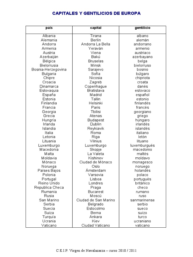 Consultado el 8 de febrero de Nueva YorkEstados Unidos. Glosario con los gentilícios todos los países por continentes en Inglés y Czech checo Chequia Central African. La lista oficial de los Estados reconocidos como tales en la actualidad se encuentra en la página de la ONU.